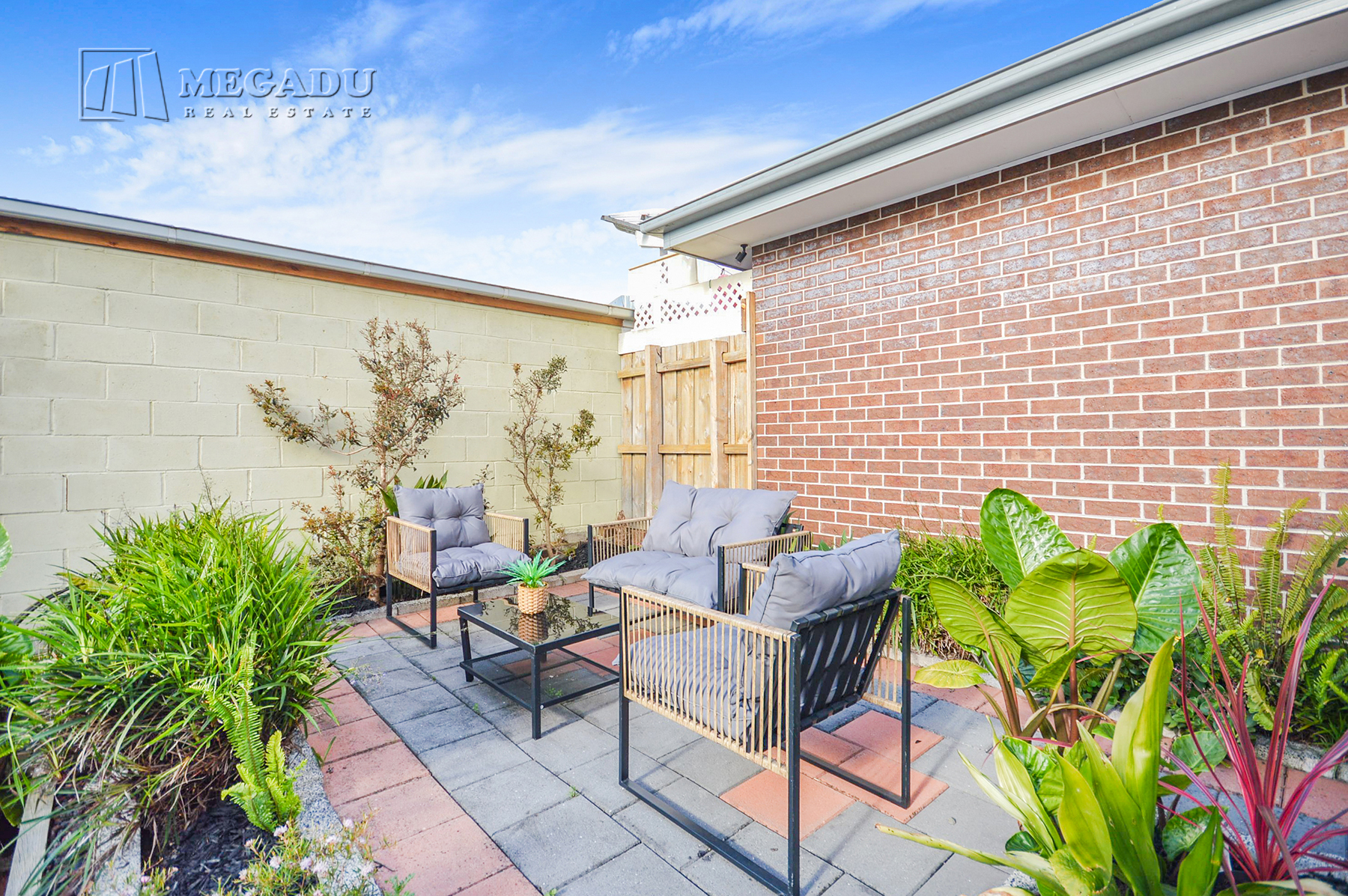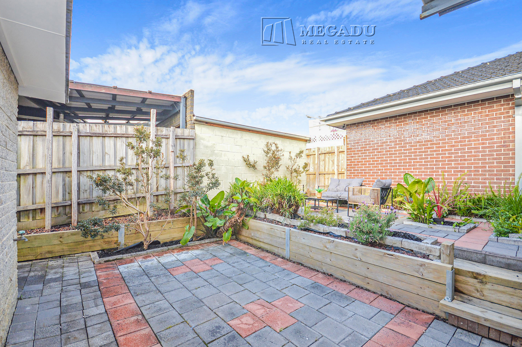 * Private paved courtyard with raised garden beds